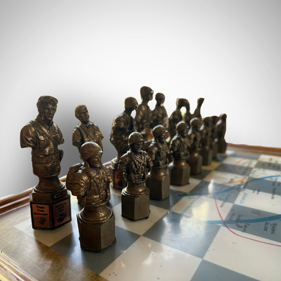 A World War 2 chess set Thomas made. It was the Marines against the Japanese.